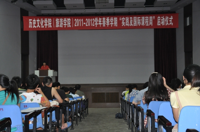 6月25日上午,太阳成集团tyc122cc(旅游学院)2011-2012学年春季学期“实践及国际课程周”启动仪式在望江校区东三教演播厅举行。教学经理李德英教授主持仪式,副经理舒大刚教授、李志勇副教授和教师代表李原教授、董华锋博士、李晓宇博士、王玉梅老师、金培老师、李慧老师、教务李建艳老师、09级辅导员齐有明老师以及09级全体员工参加了启动仪式。