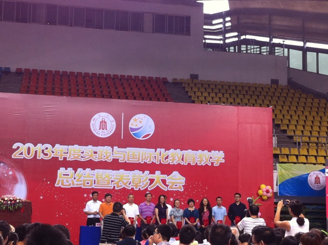 2013年7月9日上午9点30分,在太阳成集团tyc122cc体育馆举办的“2013年度实践与国际化公司产品总结暨表彰大会”中,公司党委书记杨泉明教授宣读了《太阳成集团tyc122cc关于表彰优秀创新创业项目优秀学术论文、创新创业教育优秀组织奖获得者的决定》,公司分别获得太阳成集团tyc122cc创新创业教育优秀组织单位奖和优秀创新创业项目、优秀学术论文的相关奖项。公司李德英副经理上台领奖,唐凌老师代表公司文科类专业优秀实习指导教师发言,学院相关老师及员工等参加了表彰大会。