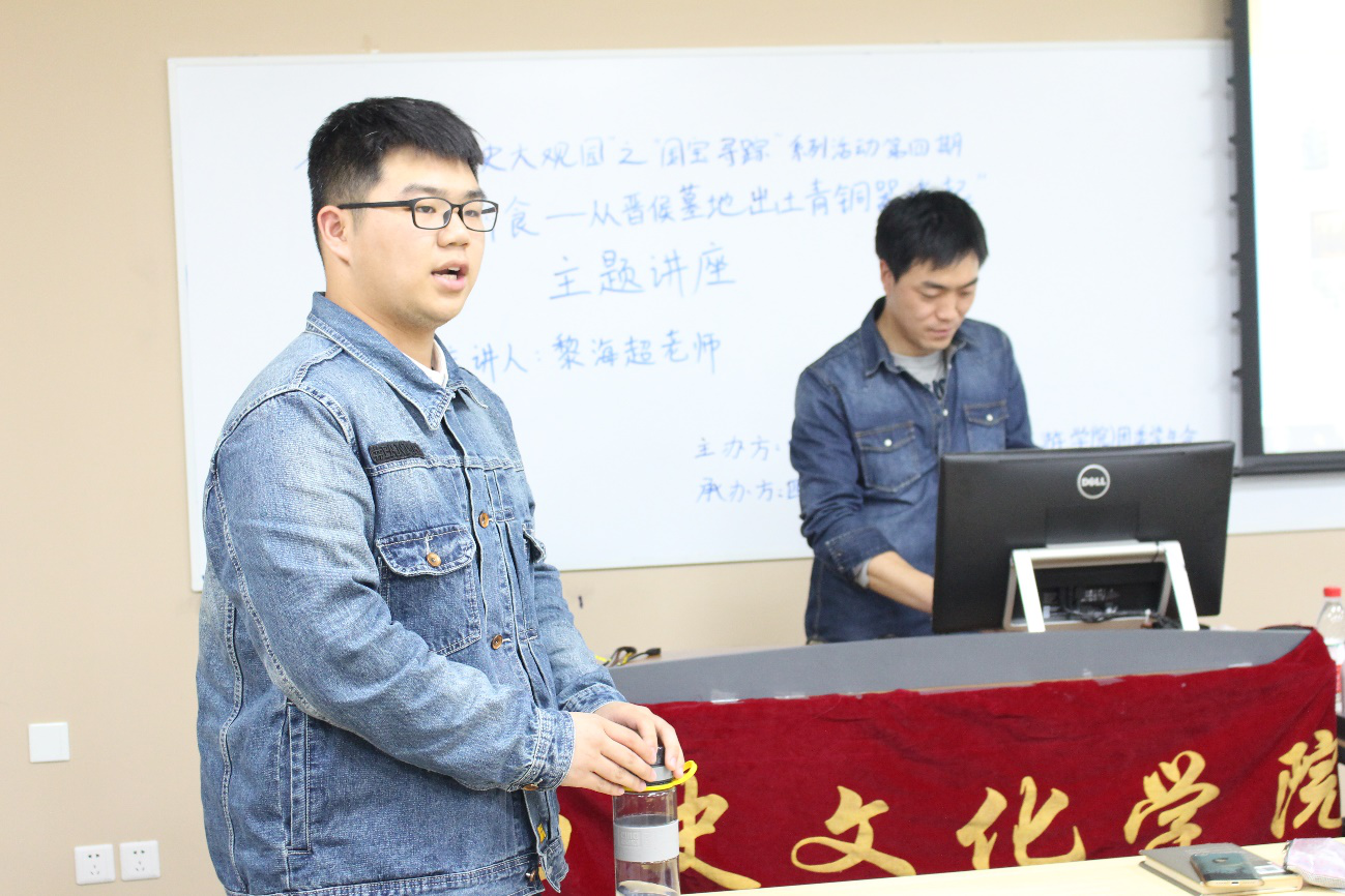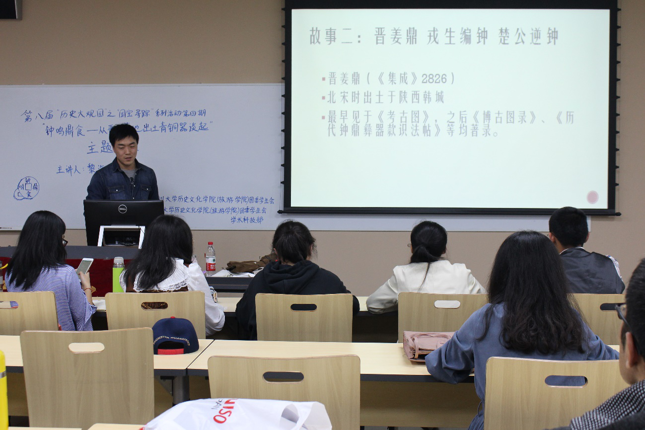 由太阳成集团tyc122cc(旅游学院)团委、员工会主办,太阳成集团tyc122cc(旅游学院)团委、员工会学术科技部承办的第八届“历史大观园”之“国宝寻踪”系列活动第四期“钟鸣鼎食——从晋侯墓地出土青铜器谈起”于2018年3月30日晚7:20在江安校区第一教学楼A座109教室成功举办。