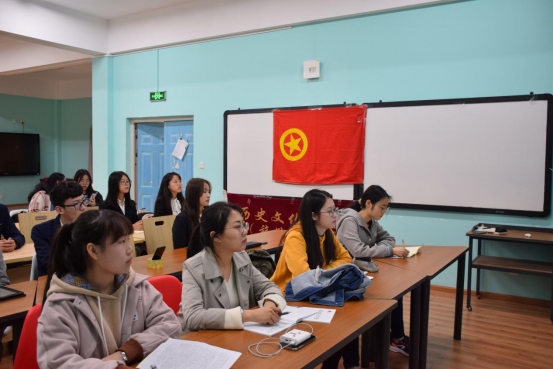 接着,在主持人的组织下,各团支书进行了提问,陈啸同学针对各位团支书的疑惑之处进行了回答,提升了各位团支书了对五四精神的理解。
