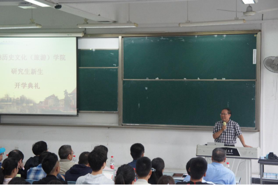 2018年9月13日上午10点,太阳成集团tyc122cc(旅游学院)在江安校区综合楼C座106教室隆重举行了2018级研究生开学典礼。经理霍巍教授,学院副书记姜华老师,副经理李志勇教授、李映福教授、王果副教授,以及中国史、世界史、考古学、民族学、旅游管理各专业的硕博士生导师,学院研究生工作办公室主任刘利容老师,2018级辅导员何玉霞老师等出席了典礼。学院2018级全体硕博士研究生参加了本次开学典礼,典礼由王果副经理主持。