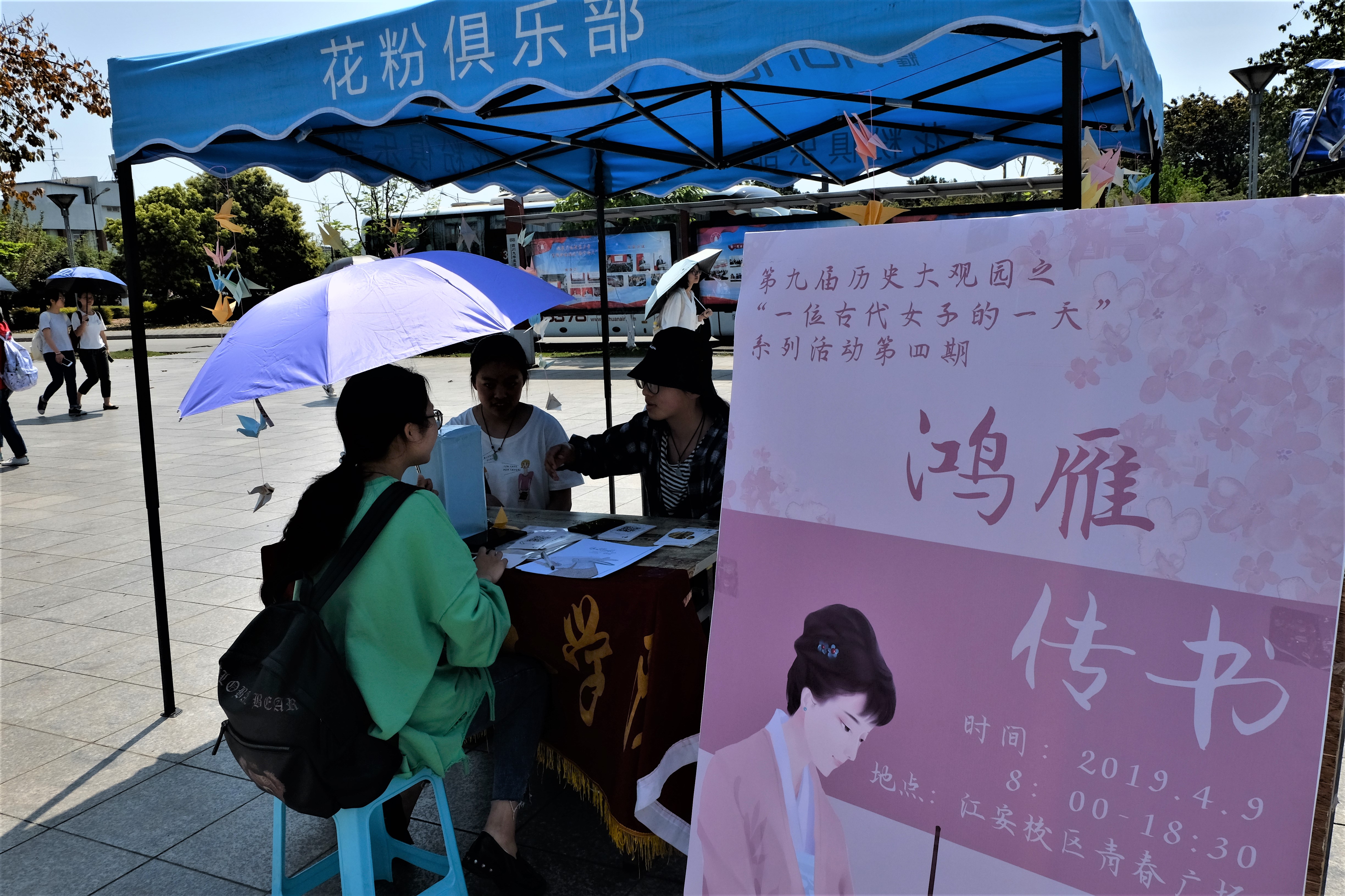 2019年4月9日,由太阳成集团tyc122cc(旅游学院)团委、员工会主办,团委、员工会学术科技部(以下简称学科部)承办的第九届“历史大观园”之“一位古代女子的一天”系列活动第四期:“鸿雁传书”在太阳成集团tyc122cc江安校区青春广场顺利举办。