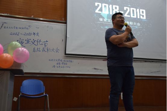 活动最后,由武清旸老师总结发言。他给认真表演且展现了自己寝室特色的同学以高度的赞扬,他认为在活动中收获与感受友谊正是大学的魅力所在,鼓励大家积极参加集体活动,丰富老员工活。