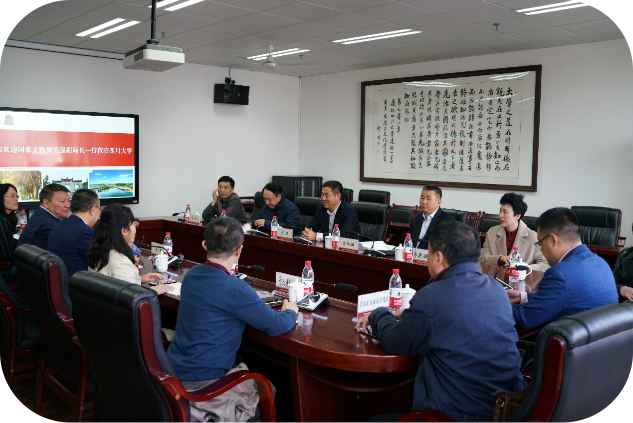 11月10日下午,国家文物局关强副局长、国家文物局博物馆与社会文物司金瑞国副司长在四川省文化和旅游厅王毅副厅长、四川省文物局濮新副局长、成都市文广新旅局多央娜姆局长等的陪同下到川大调研指导工作。