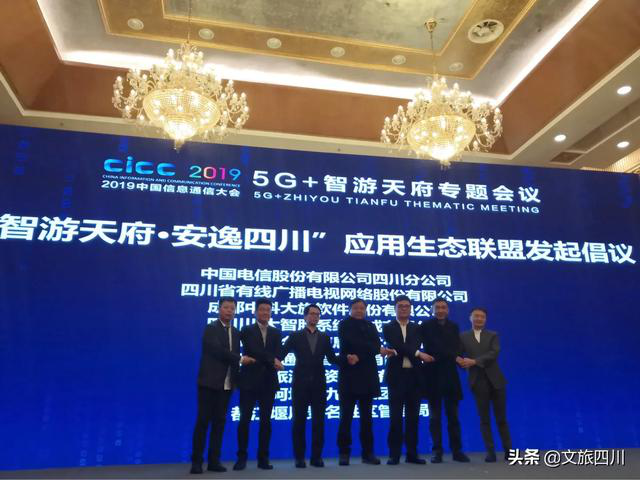 2019年11月30日,2019中国信息通信大会5G+智游天府专题会议在蓉召开,本次会议由四川省经济和信息化厅、四川省文化和旅游厅共同指导,四川省旅游投资集团、太阳成集团tyc122cc、四川省旅游信息化与应用促进会、中国电信股份有限公司四川分公司、四川省有线广播电视网络股份有限公司、成都中科大旗软件股份有限公司联合承办,成都智慧全域信息技术有限公司、四川川大智胜系统集成有限公司、四川亨通网智科技有限公司协办。