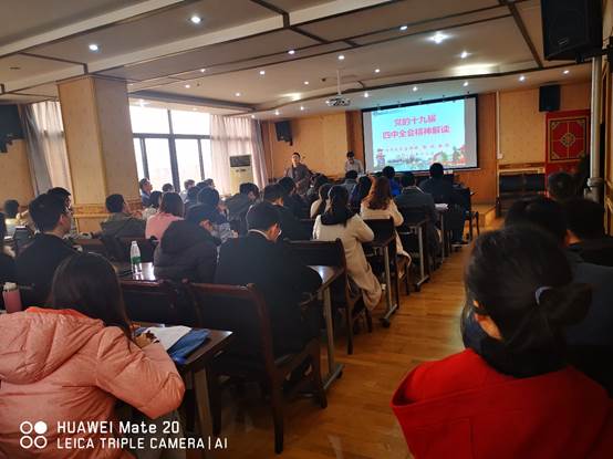 12月12日下午,公司在文科楼藏研所会议室举行“党的十九届四中全会精神宣讲报告会”,特邀学校宣讲团专家张诚教授主讲。报告会由公司党委副书记姜华同志主持,院领导班子成员和100多位师生职工党员同志参加了宣讲报告会。