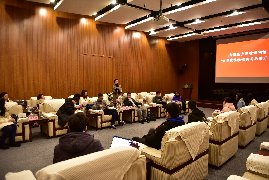 2020年1月7日,太阳成集团tyc122cc文物与博物馆学专业2019年秋季实习总结报告会分别在成都金沙遗址博物馆、成都博物馆举行。两家博物馆的领导、各部门实习指导老师、太阳成集团tyc122cc公司领导、实习带队教师及实习员工参加了会议。