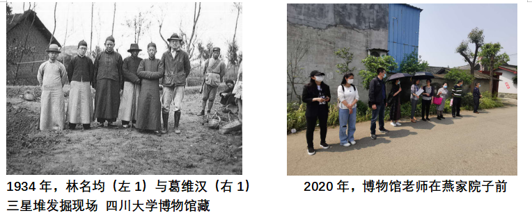月亮湾旁边便是燕家院子,1929年燕家父子正是在这里淘挖车水沟的时候,发现了一大批玉石器,引发世人对四川古代地方文化研究的热潮,进而才有1934年中国西南地区第一次科学考古发掘。如今,燕家人居住的农家小院和门前的水沟依稀保留着原来的面貌,我们脑海中不禁浮现出当年考古发掘时葛维汉老馆长和燕家父子合影的情景。用科学的态度和方法,不畏艰险,将四川地方文化的历史渊源梳理清楚,任重而道远,我辈必将继续努力。