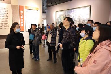 遗址陈列馆展厅内存放着大量革命历史文物、旧照、文字图片等珍贵资料,讲述着遵义会议的重大历史意义、无数革命英雄的感人爱国故事,并再现了以毛泽东同志为领导的中国工农红军四渡赤水的战斗经过,在革命危机关头“出奇兵、夺胜利”的英雄史诗。