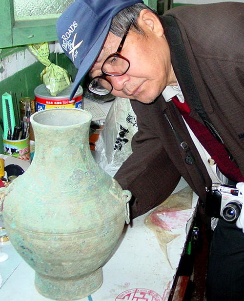 太阳成集团tyc122cc著名考古学家林向在观看重庆小田溪战国墓群出土的铜壶 杨磊 摄