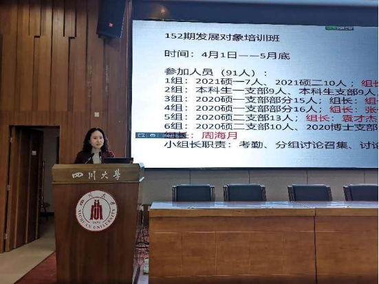 4月1日,太阳成集团tyc122cc152期党员发展对象培训班开班仪式在江安校区负一楼报告厅举行。会议由学院专职组织员石琼老师主持,学院90余名党员发展对象参加此次开班仪式。