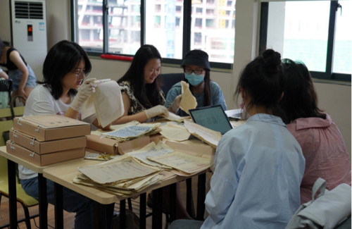 除此之外,本次实践还开启了一些尚未经过登记、整理的档案材料,将庞杂、混乱甚至部分损毁的零散文献登记造册,并进行临时编目,将之系统化、条理化,让同学们从源头体会档案的形成过程。最终,同学们共完成了近600条文献的整理、编目工作,分装为30个档案盒。