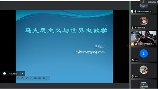 吕和应副教授就马克思主义与世界史教学主题进行了分享,吕老师概述了马克思主义与世界史课程思政,并以《德意志意识形态》与课程思政为案例进一步进行了阐述。