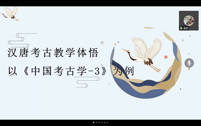 庞政老师以自己所授课程《中国考古学-3》为例,分享汉唐考古教学体悟。分享内容包括课程概述、教学设计思路、课程考察照片等。最后庞政老师结合教学实践及考古学的学科特点进一步就教学实践与科研的关系进一步强调了课堂的作用。