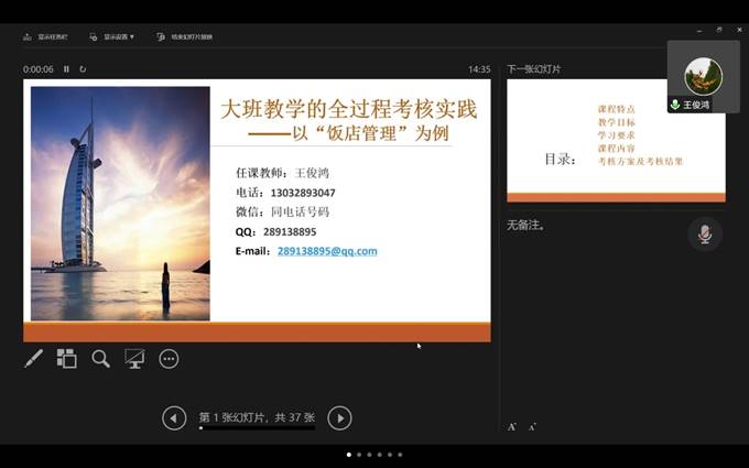 旅游管理专业王俊鸿副教授结合自己多年的教学实践经验,以自己主讲的《饭店管理》课程为例,从课程特点、教学目标、学习要求、课程内容、考核方案及考核结果、自我思考等方面分析了大班教学的全过程考核实践。