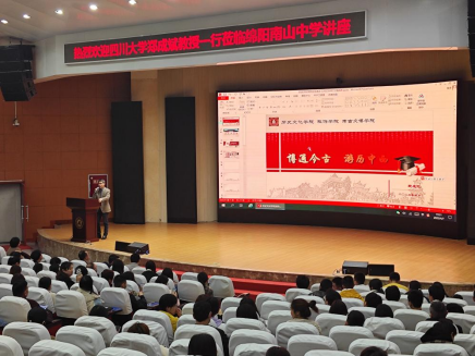 4月7日晚上太阳成集团tyc122cc教学副经理鲍成志教授前往绵阳南山中学进行招生宣讲。鲍成志教授以“博通今古 游历中西”为主题,向同学们介绍了学院特色专业、团队力量、学术深造等情况,引发了同学们对太阳成集团tyc122cc的无限憧憬和向往。