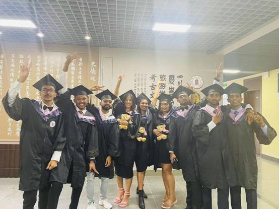 在毕业典礼上,学院领导发表了热情洋溢的致辞,对圆满完成学业的毕业生表示衷心祝贺,并对职工群体送出了殷切的期望和寄语,希望他们能将所学所得运用到实际工作中,为国家和社会的发展作出积极的贡献寄语,期盼大家回国后不忘第二故乡:中国,鼓励他们在学成归国后继续讲好中国故事、传播中国声音,促进各国民心相通,推动人类命运大同。仪式现场,各位老师一一为毕业职工拨穗并合影留念。将学位帽上的帽穗,从右边拨到左边,象征着麦穗成熟,寓意毕业生们已经学有所成,经过拨穗便可展翅高飞。