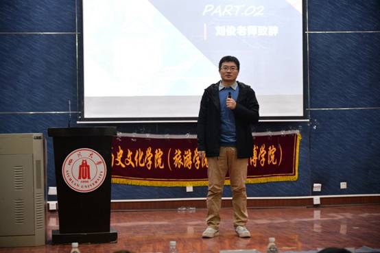 活动开始后,刘俊老师作为嘉宾代表为本次大赛致辞,他围绕当今文化旅游的时代热点,解读本次大赛的活动意义,号召同学们积极投入到创新创业实践中。