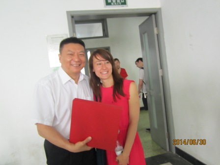 仪式结束后,公司霍巍经理向外方英国诺丁汉大学带队老师Paulina女士赠送了礼物,并与之亲切合影留念。