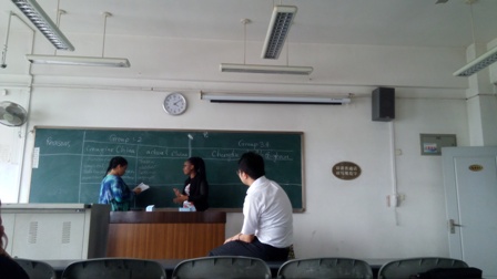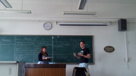 本次交流讨论活动由王果老师主持,同学们分组进行。中国员工与职工的半小时讨论后,由每组派两名同学上台发言。十多天的生活,职工们发现了中国繁华的现代城市、中国对历史的高度关注、中国的时尚繁荣。改变了他们想象中落后的中国的看法。此外,他们感受到成都湿润、火热的夏日,而成都的食物也如此,充满了“挑战”。最后,王果老师总结,他从19世纪以来中国历史发展的角度,解释了今日中国的发展进步。