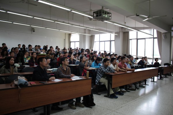 说明会开始,李德英教授首先上台介绍与会嘉宾,分享转专业规则,展示专业分流程序以及相关工作进行时间、考核方式,这令在座同学对专业分流有了较全面的认识。