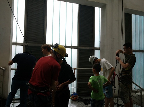 7月14日上午,樊老师及他的两位助理带领大家体验了一把户外SRT。当天早上,老师早早来到江安布置装备,由于天气原因,本该在户外操作的活动搬到了江安一教B座的楼梯间,但这并没有妨碍活动的进行。活动中,同学们都积极尝试,老师认真帮同学们穿戴装备。虽然刚开始都有些小困难,但在老师们的指导和鼓励下,最终都成功攀到绳顶。至此,这次系列讲座圆满结束。