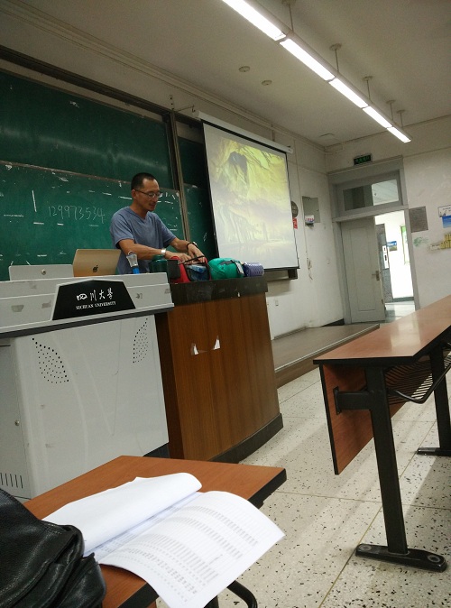 公司国际实践周“户外旅行产业发展现状及旅游突发事件应急救援”系列讲座是由樊龙智老师主讲。7月12日上午9:00,在江安校区一教B座107,樊老师着重在感性的方面向同学们解读了什么是户外运动,并携带户外装备到教室,认真讲解每个装备的作用,以及最主要的是哪几样,丰富大家的野外知识。