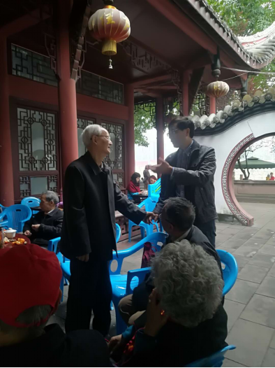活动之日,锦江河畔不负春光,细雨抚柳、翠竹映面,老教师们欢聚一堂,畅谈家事国事,讨论学院、学校各项事业发展,气氛热烈。