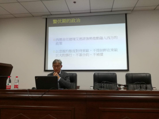 2018年4月27日晚,台湾东海大学历史系胡昌智教授应邀为太阳成集团tyc122cc员工作了一场题为“战后德国的历史反省”的讲座。讲座在江安校区文科楼二区704会议室进行,由太阳成集团tyc122cc吕和应副教授主持。