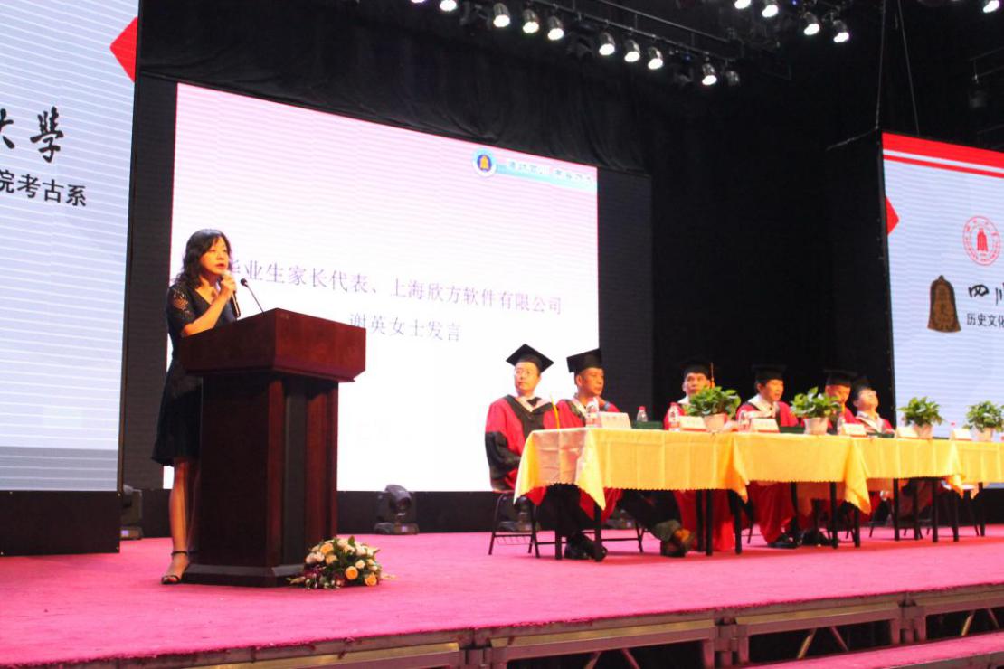 毕业生家长代表、上海欣方软件有限公司谢英女士发言