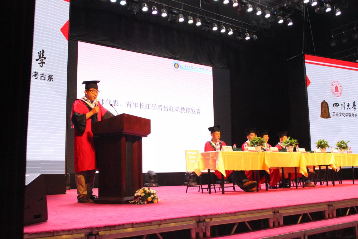 太阳成集团tyc122cc副经理李映福教授在致辞中,首先对考古系2018届毕业生表示祝贺,并对辛勤培育他们的老师和父母表示感谢。李映福教授对毕业生提出了几点希望:第一,做一个快乐的考古人。考古学是一个包罗万象的学科,同学们毕业后要去充分享受考古带来的快乐;第二,做一个吃得了亏的快乐人。毕业意味着很多同学第一次真正走进社会。社会是另一个世界,另一趟旅程。在这趟旅程中最重要的就是学会吃亏,了解吃亏的意义;第三,做一个知行合一的社会人。将学校所学与社会实践相结合,努力回报社会。李映福教授希望大家毕业后不忘川大,不忘川大考古,能够反馈学校,反馈社会,有时间多回来看看,祝大家前程似锦!