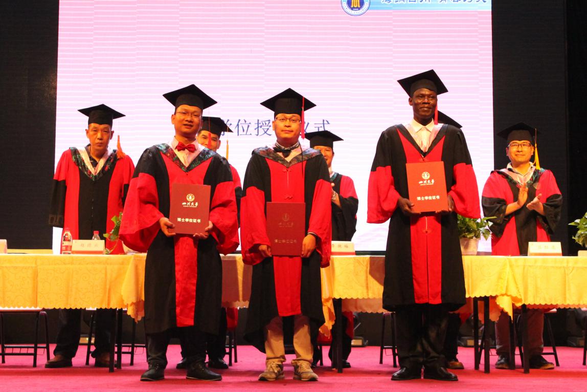 在学位授予仪式上,86名本科生、研究生分组走上主席台,由学院领导李映福、鲍承志,考古系罗二虎教授、赵德云教授、吕红亮教授,为他们逐一拨流苏、颁发学位证书,并合影留念。