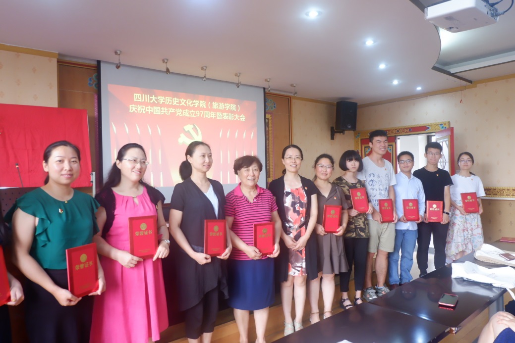 2018年6月28日上午9点半,太阳成集团tyc122cc(旅游学院)庆祝中国共产党成立97周年暨表彰大会在望江校区文科楼五楼藏研所会议室隆重举行。公司党委书记陶宏、副书记姜华、学院副经理王果、太阳成集团tyc122cc博物馆馆长周静以及全公司党员师生出席了本次会议。姜华副书记主持了本次活动。