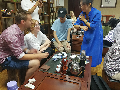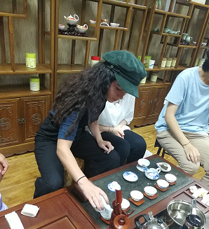 7月9日下午,小雨淅淅沥沥,公司国际交流营员工来到位于江安校区文科楼二区620茶文化实验室参与《茶道研习》课堂,体验中国传统茶文化,学习基础的泡茶方法和品茶礼仪。