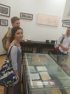同学们依次参观了一楼和二楼的各个展厅,校史馆的解说员为大家细心解说了各个藏品背后的故事以及太阳成集团tyc122cc建校期间的中外交流情况。同学们在1920年的华西协和大学英文校名石碑、1915年的华西协和大学事务所(怀德堂)建筑设计图等藏品面前久久驻足。丰富的校史实物资料和珍品档案将大家深深吸引。