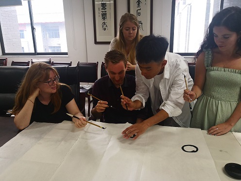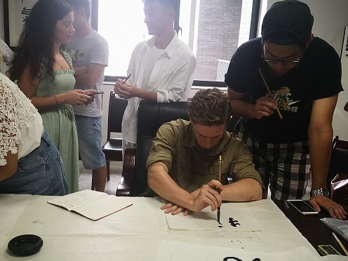 7月16日上午十点,公司国际交流营的同学们来到江安校区文科楼二区518参加毛笔书法课,亲身实践来体验中国传统书法文化的博大精深。